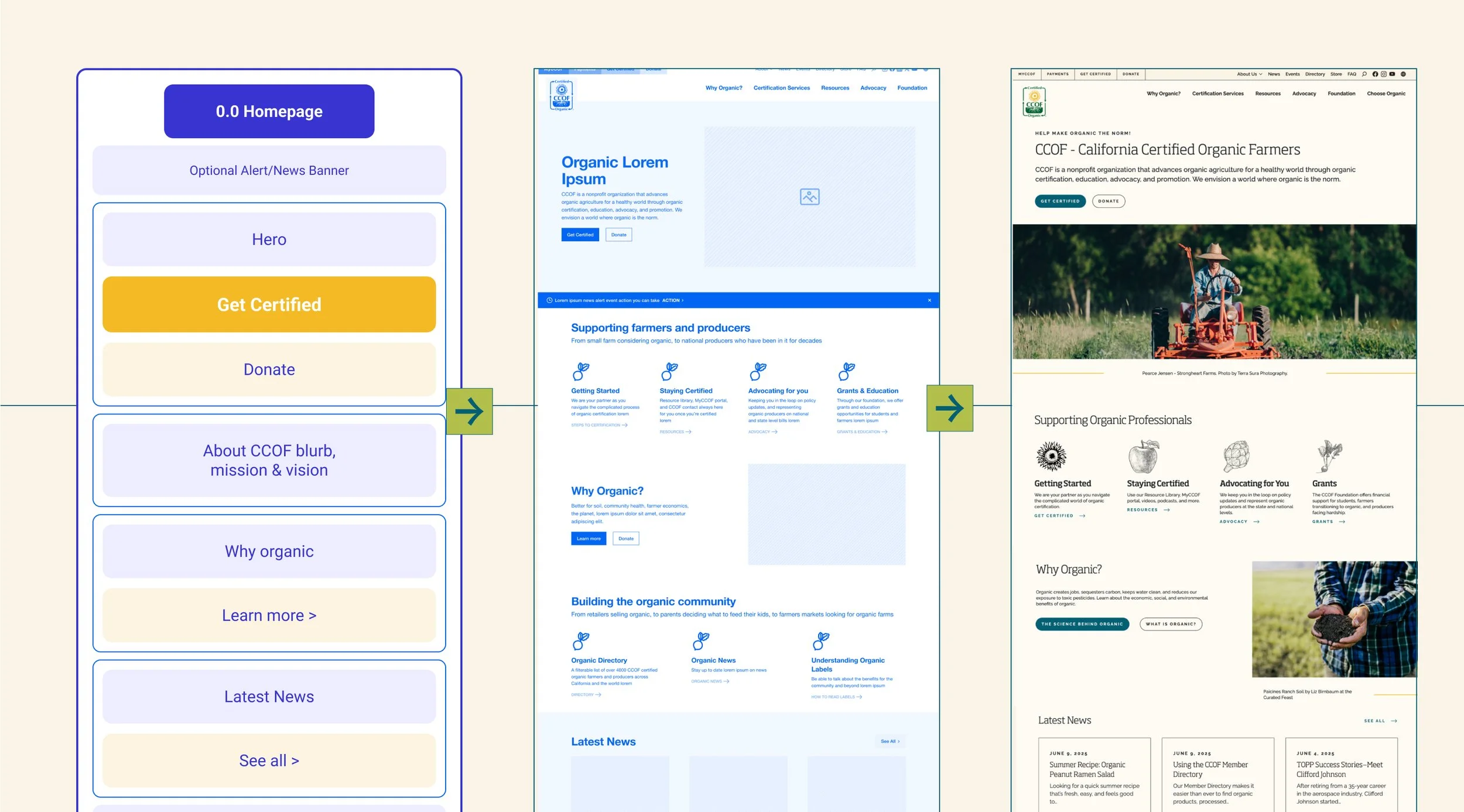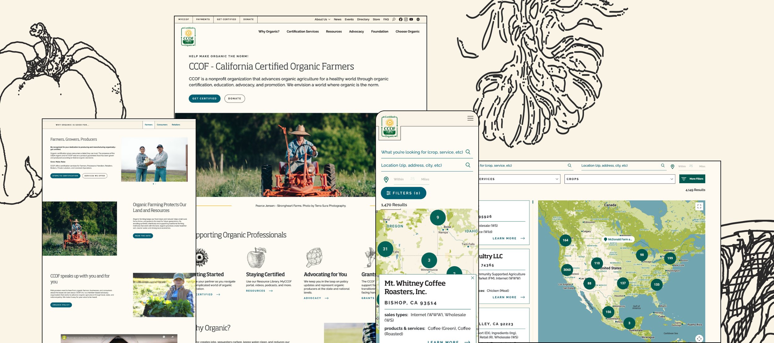 The Solution: Through a robust user experience process with an emphasis on a lean sitemap and improved taxonomies, the new site creates a cleaner, clearer path for new and old users to find what they’re looking for. While the CCOF team felt comfortable and confident with their brand, they knew they needed to streamline how it was being used. Through the creative direction process, I led their team through exercises to hone in on what parts of their palette and robust typography library best fit with this new era. The final product marrying the improved user experience and simplified branding resulted in a true breath of fresh air experience.