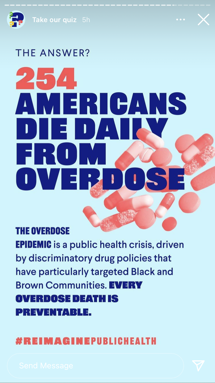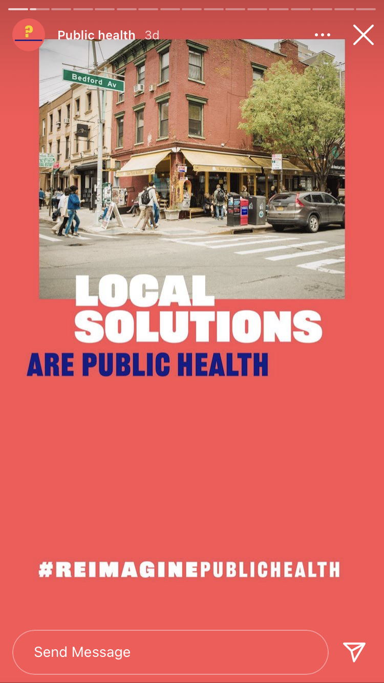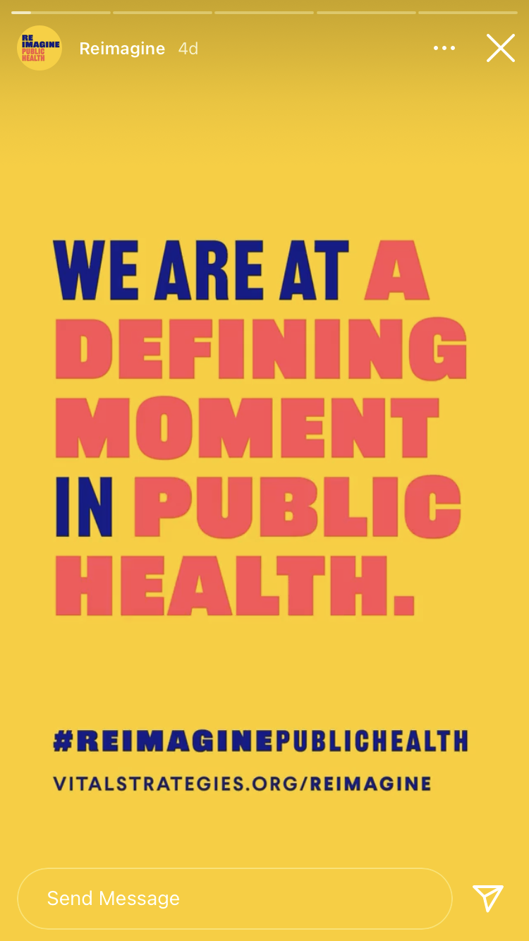 To articulate our enthusiasm around the future of public health we crafted a narrative that carried across multiple mediums–a splash page, anthem video, and social media statement graphics–all around why now, why us and to rally the sector and advocates to get to work. Monopolizing on the fact that the general public does not know much about public health, we turned to quizzes and human-centric stories to showcase how much public health encompasses. We curated a quiz (web based and on IG stories) that included some basics of public health and highlighted our areas of focus, and then turned to our community and asked them: what is public health to you? Their answers were compiled in a series titled ____ is Public Health which was shared widely across all social media platforms.